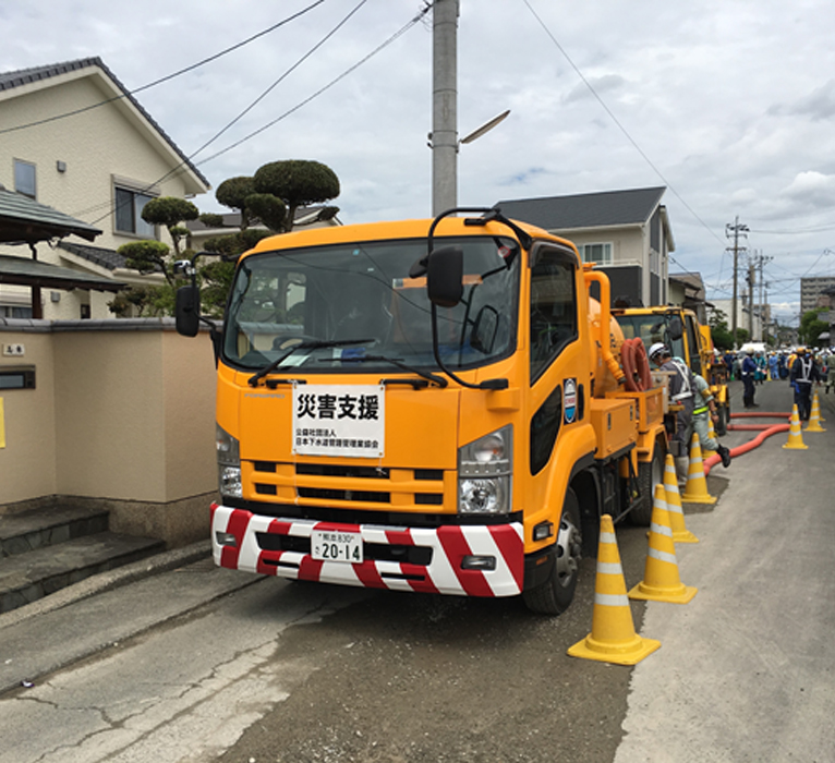 大規模な天災が発生した際は、損傷した下水道施設を迅速に復旧できるよう、支援活動を行っています。
